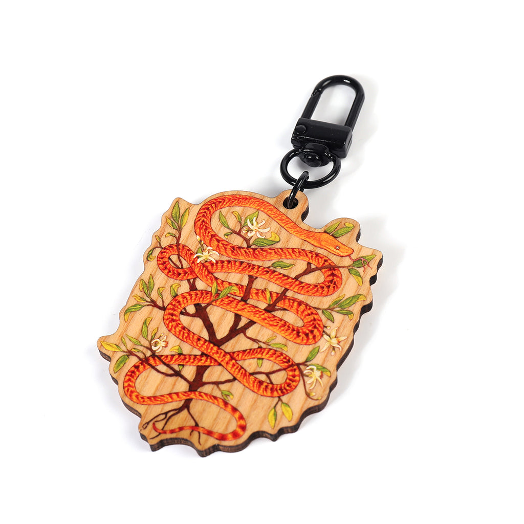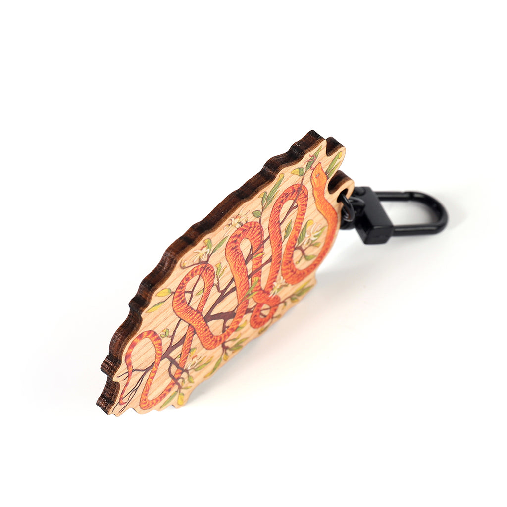 A keychain featuring my MARMALADE design snake art! Printed on synthetic rosewood with black metal clasp. 2.5" approximate keychain size.