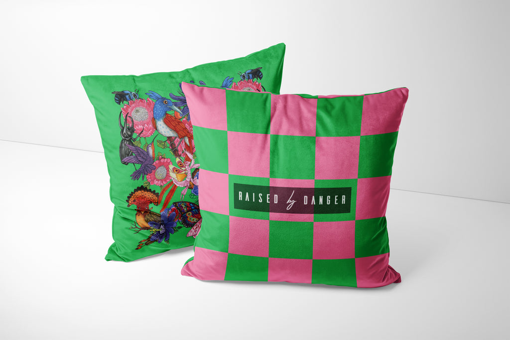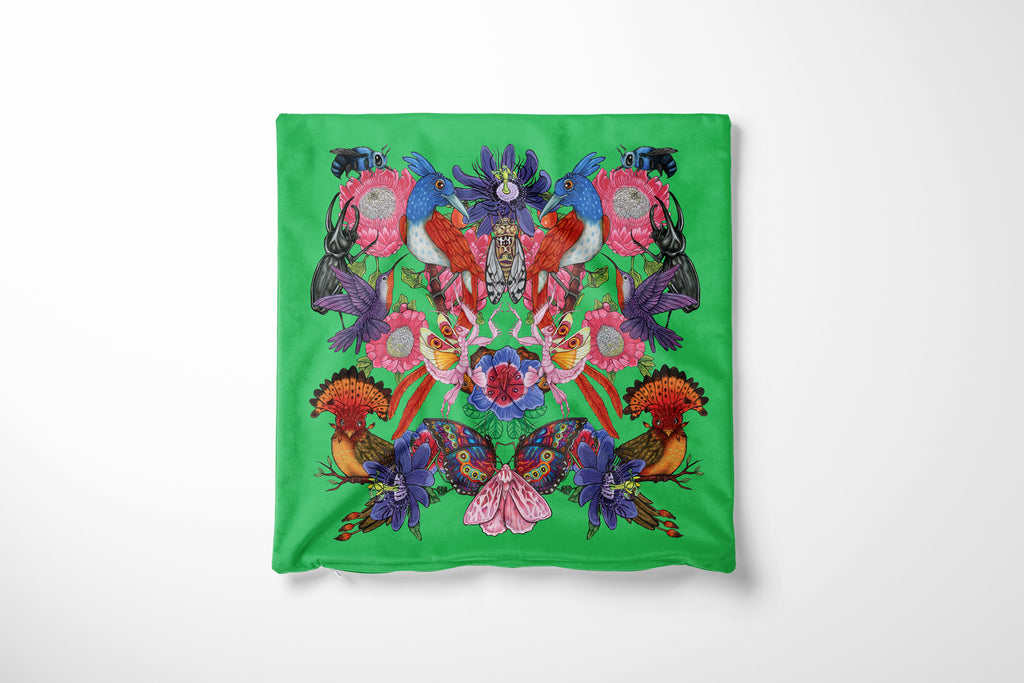 THE BIRDS & THE BEES - recycled velvet luxury cushion green